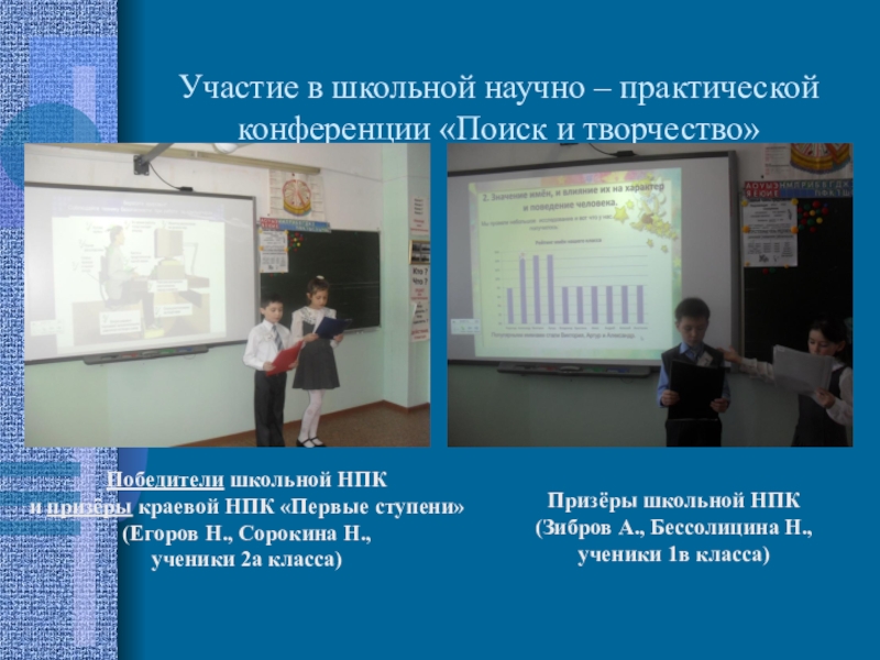 Слайд 29Участие в школьной научно – практической конференции «Поиск и творчество»