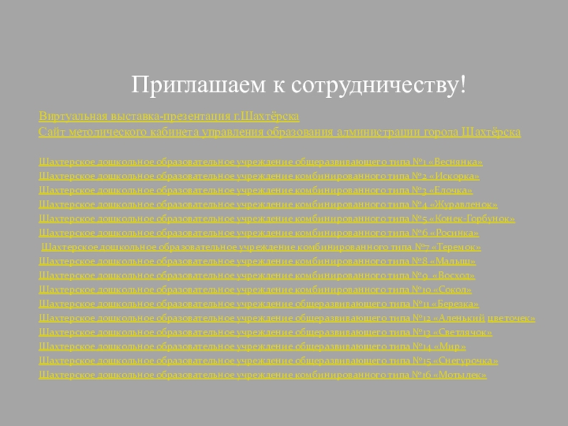 Сайт методического кабинета управления образования администрации города Шахтёрска