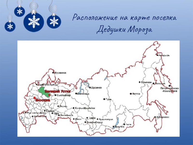 Слайд 4Расположение на карте поселка Дедушки Мороза