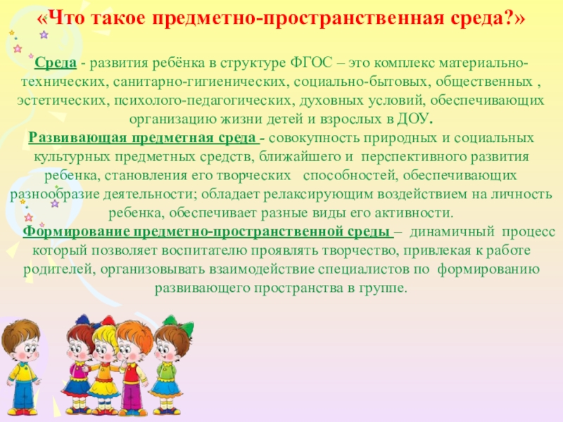 Создание предметно – пространственной среды, взаимодействие воспитателями с родителями воспитанников группы ДОУ .
