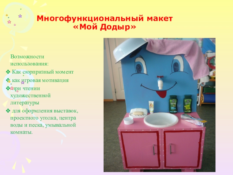 для оформления выставок, проектного уголка, центра воды и песка, умывальной комнаты.