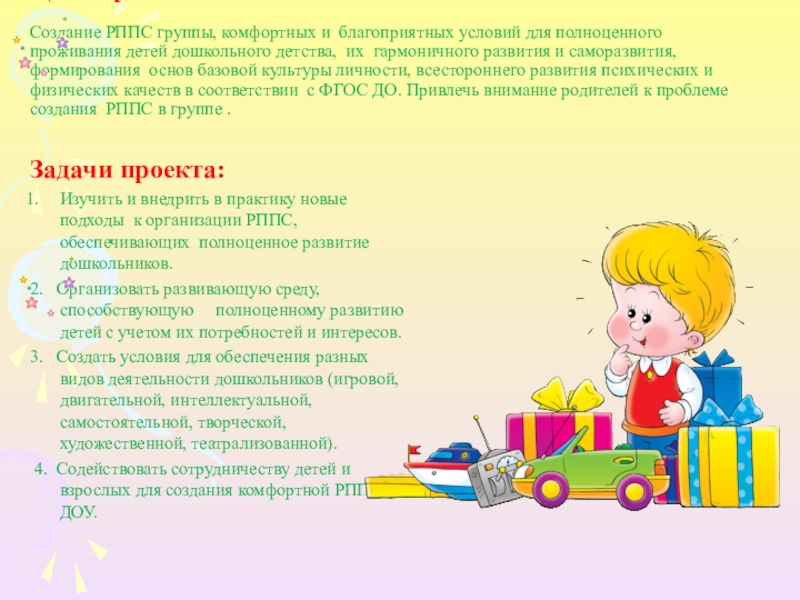 4. Содействовать сотрудничеству детей и взрослых для создания комфортной РППС в ДОУ.