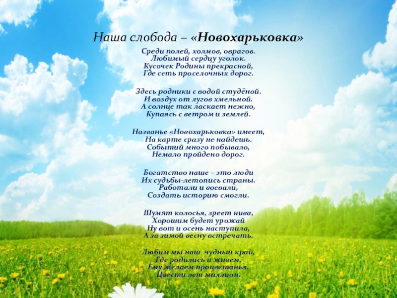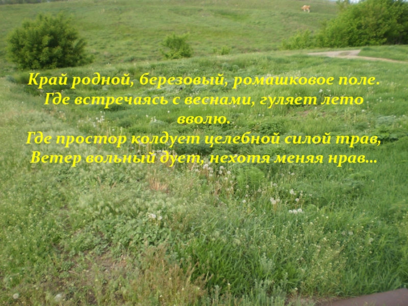 Слайд 18Край родной, березовый, ромашковое поле.