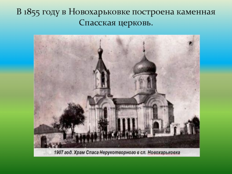 Слайд 4В 1855 году в Новохарьковке построена каменная Спасская церковь.