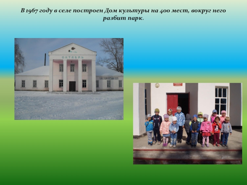 Слайд 8В 1967 году в селе построен Дом культуры на 400 мест,