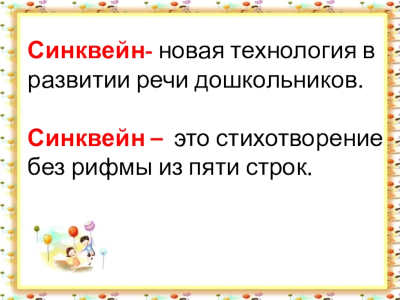 Слайд 8Синквейн- новая технология в развитии речи дошкольников.