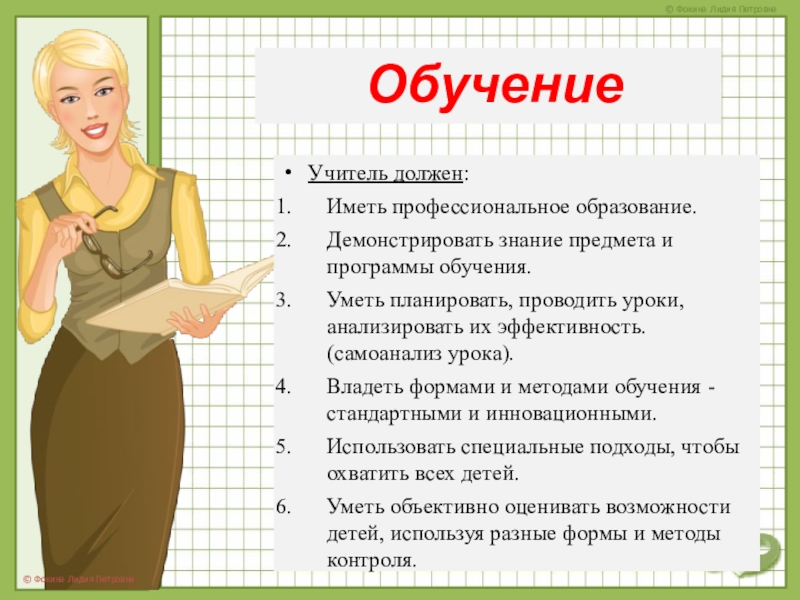 Учитель должен: