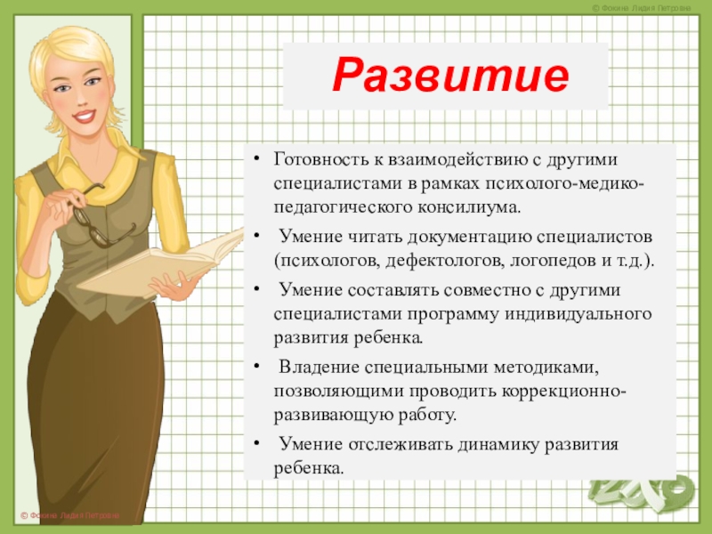 Умение читать документацию специалистов (психологов, дефектологов, логопедов и т.д.).