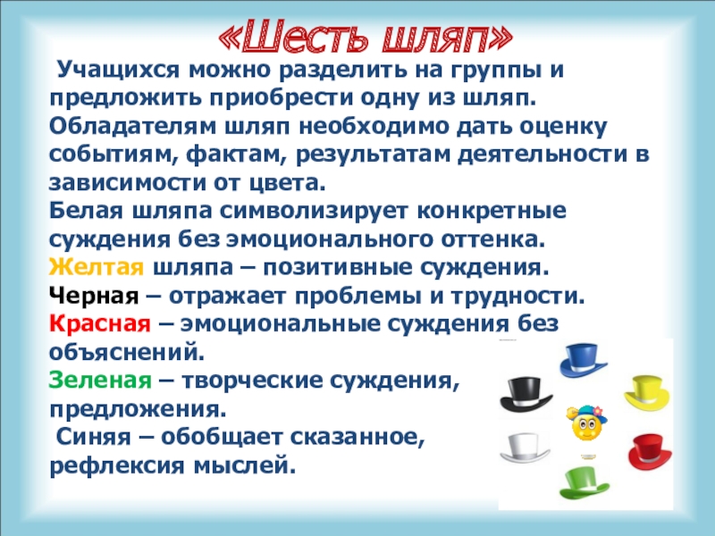 Слайд 18«Шесть шляп»