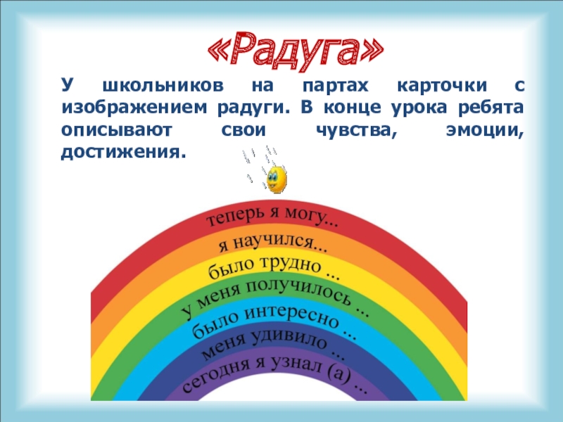У школьников на партах карточки с изображением радуги. В конце
