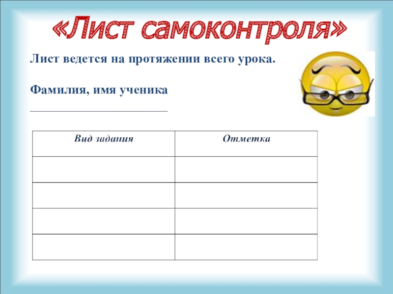 Слайд 26«Лист самоконтроля»