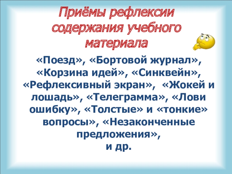 Слайд 29Приёмы рефлексии содержания учебного материала