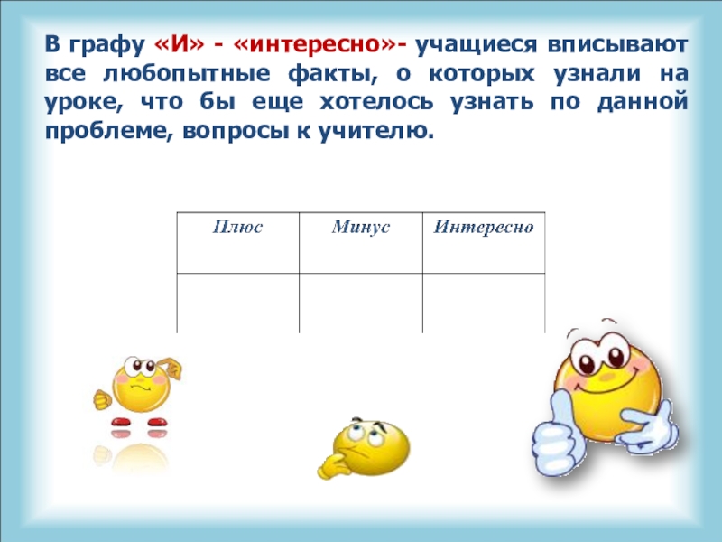 Слайд 24В графу «И» - «интересно»- учащиеся вписывают все любопытные факты, о