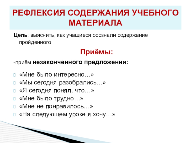 РЕФЛЕКСИЯ СОДЕРЖАНИЯ УЧЕБНОГО МАТЕРИАЛА