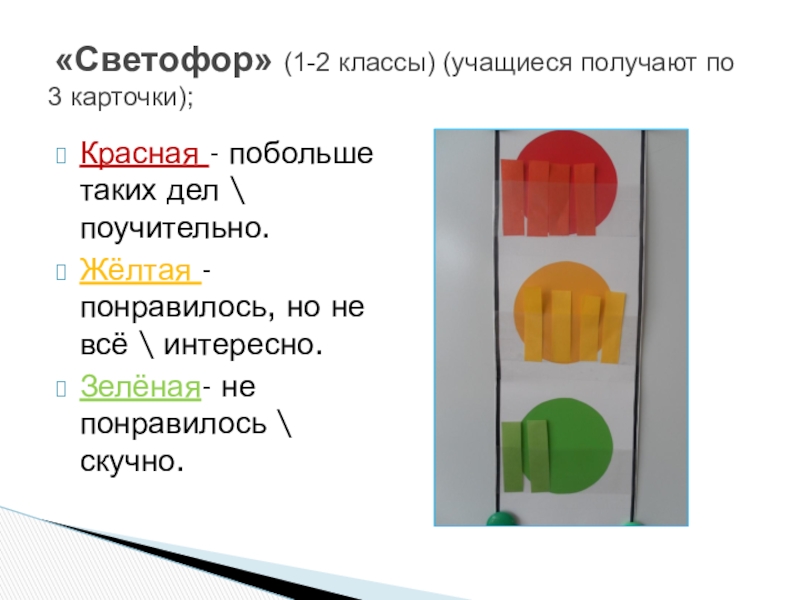 «Светофор» (1-2 классы) (учащиеся получают по 3 карточки);