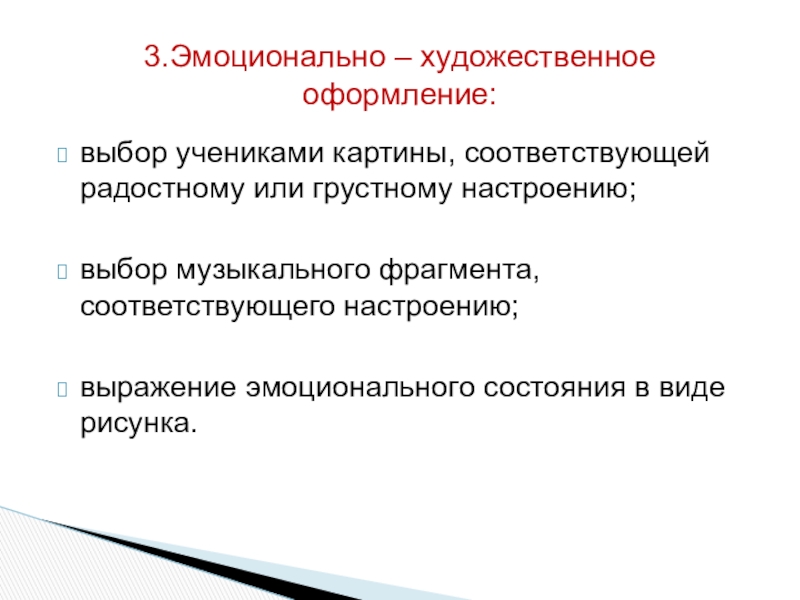 3.Эмоционально – художественное оформление: