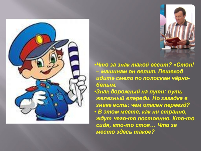 Что за знак такой весит? «Стоп! – машинам он велит. Пешеход идите смело по полоскам чёрно-белым.Знак дорожный