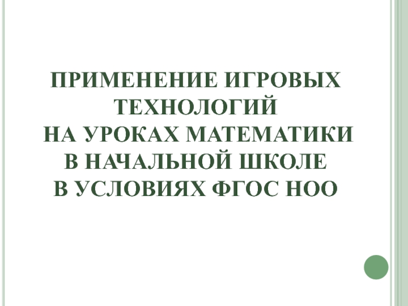 Презентация, доклад ПРИМЕНЕНИЕ ИГРОВЫХ ТЕХНОЛОГИЙ НА УРОКАХ МАТЕМАТИКИ В НАЧАЛЬНОЙ ШКОЛЕ В УСЛОВИЯХ ФГОС НОО