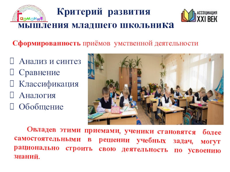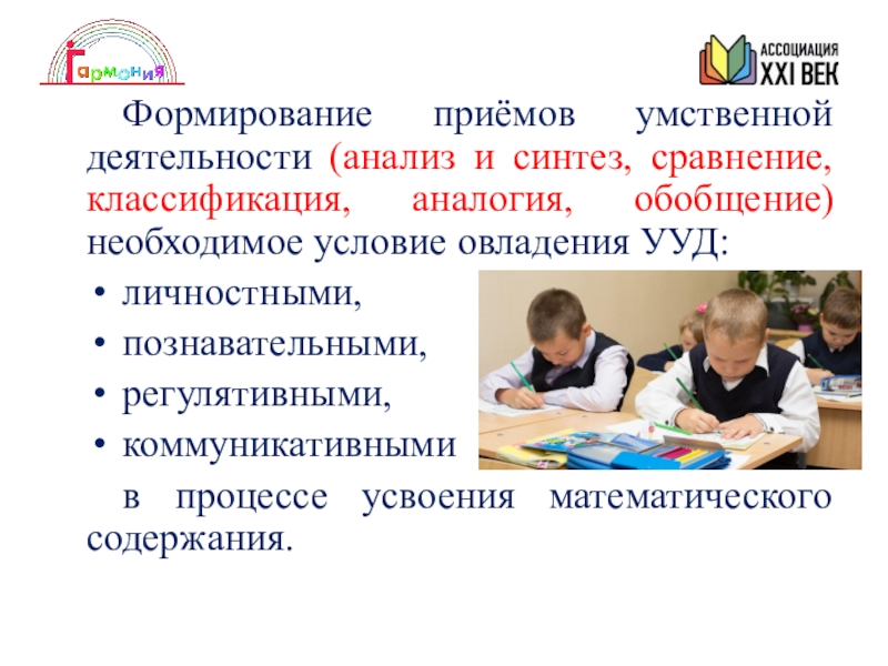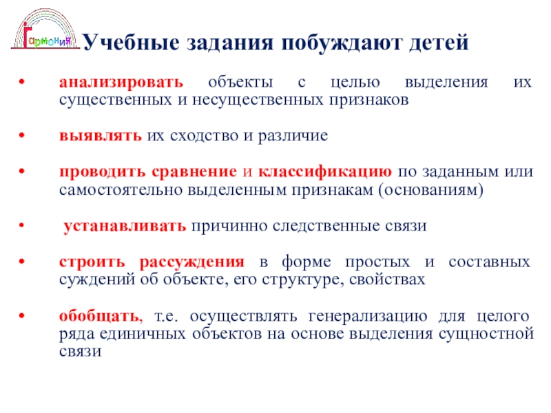 «… целенаправленное формирование приемов умственной деятельности (анализ и синтез, сравнение, классификация, аналогия, обобщение) …»