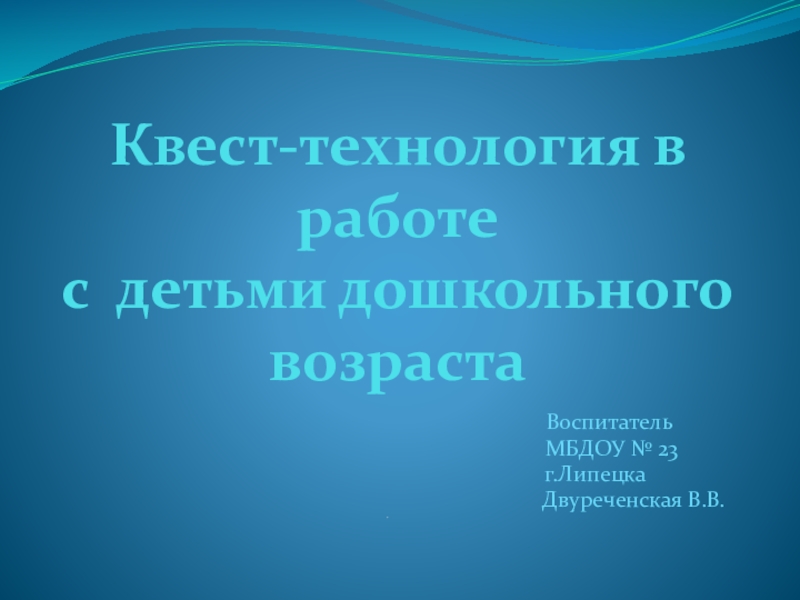 Слайд 1 Квест-технология в работе с детьми дошкольного возраста