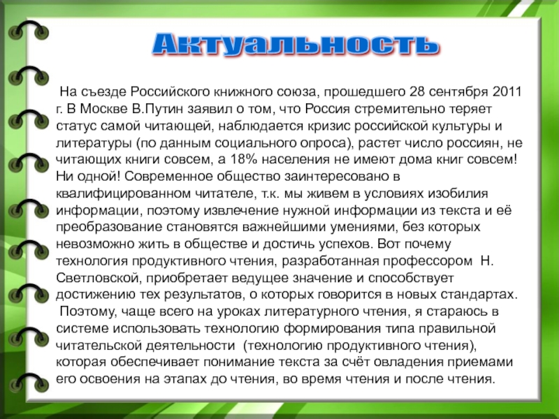 Технология формирования типа правильной читательской деятельности (с 1999 г.)