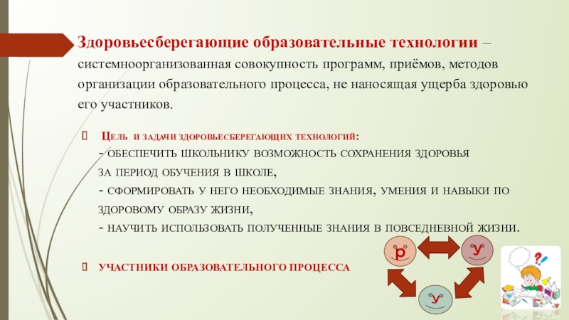 Цель и задачи здоровьесберегающих технологий: