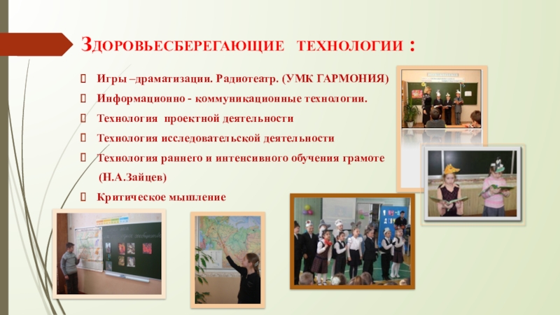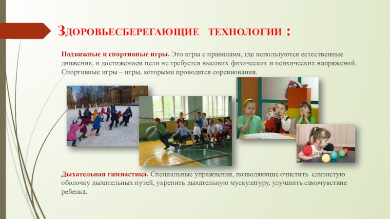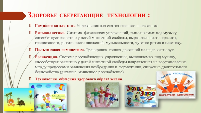 Слайд 8Здоровье сберегающие технологии :