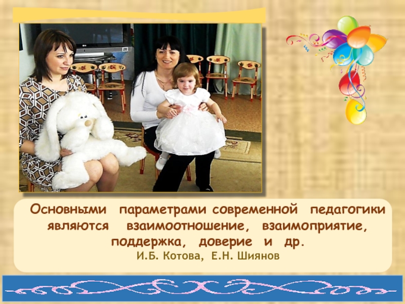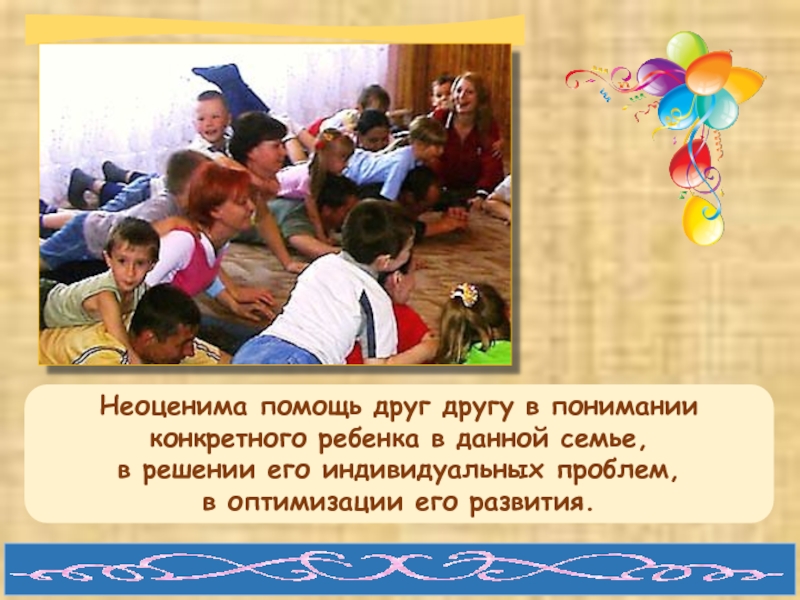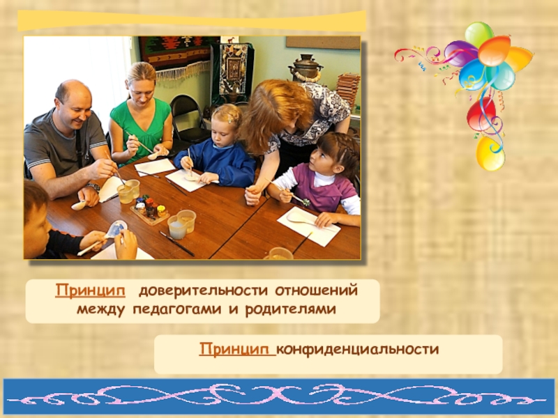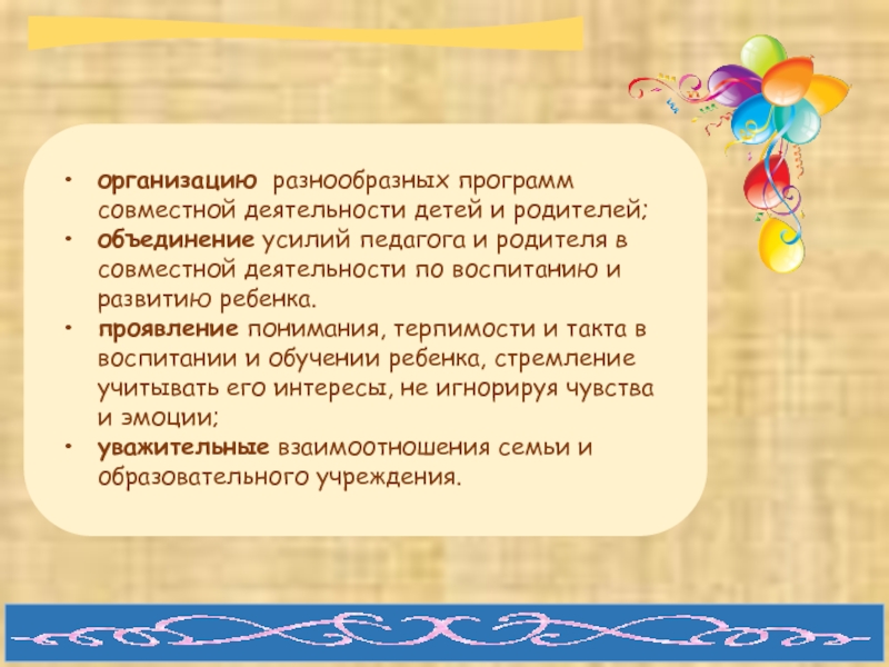 создание условий для творческой самореализации педагогов, родителей, детей;
