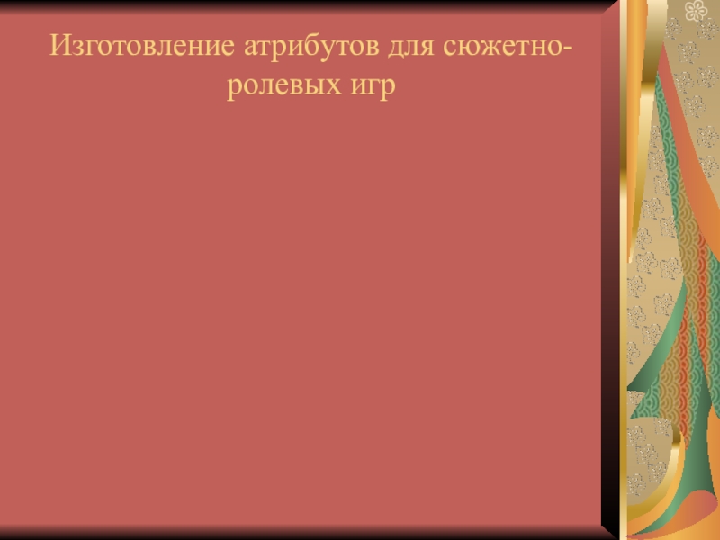 Слайд 18Изготовление атрибутов для сюжетно-ролевых игр