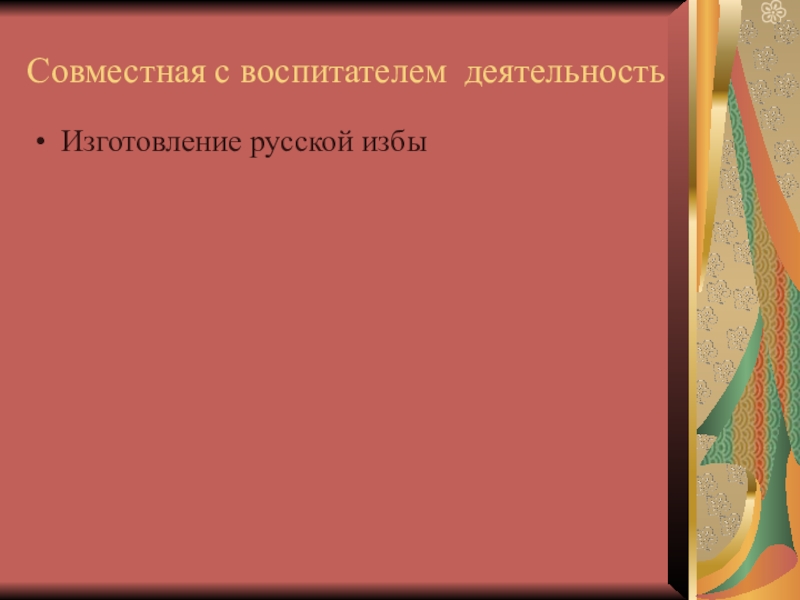 Совместная с воспитателем деятельностьИзготовление русской избы