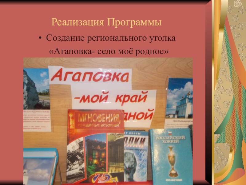 Реализация ПрограммыСоздание регионального уголка «Агаповка- село моё родное»