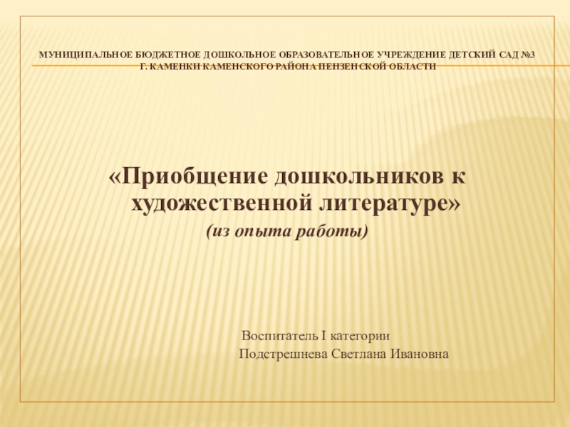 «Приобщение дошкольников к художественной литературе»