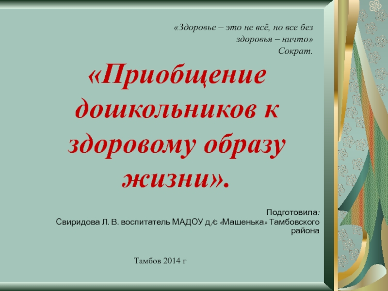 «Приобщение дошкольников к здоровому образу жизни».