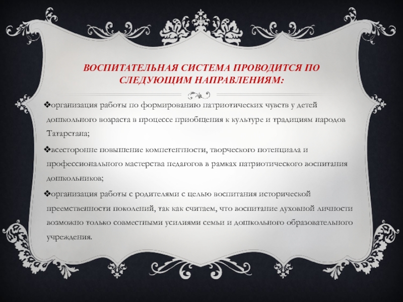 Слайд 7Воспитательная система проводится по следующим направлениям: