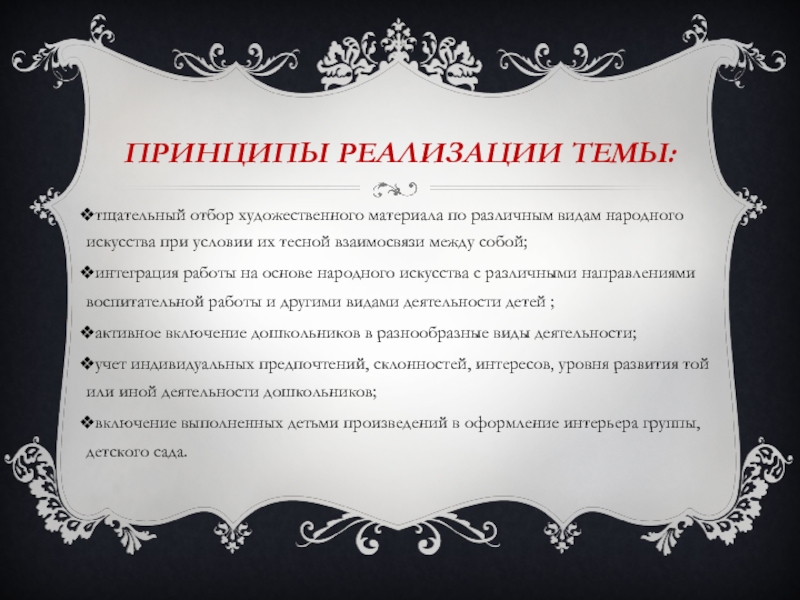 Слайд 9Принципы реализации темы: