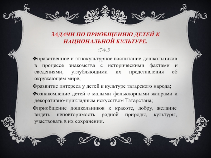 Слайд 6Задачи по приобщению детей к национальной культуре.