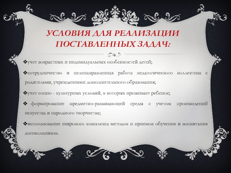 Слайд 8Условия для реализации поставленных задач: