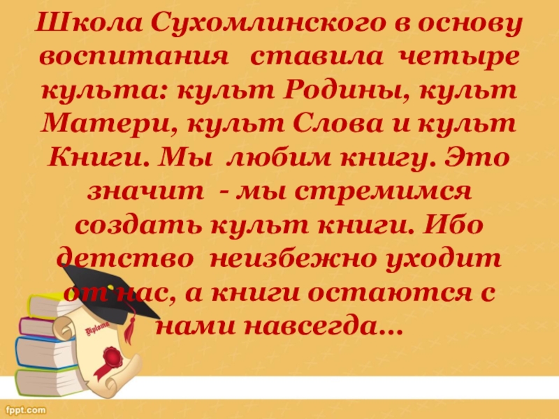 Это сайт презентаций, где можно хранить и обмениваться своими презентациями, докладами, проектами, шаблонами в формате PowerPoint с другими пользователями. Мы помогаем школьникам, студентам, учителям, преподавателям хранить и обмениваться учебными материалами.