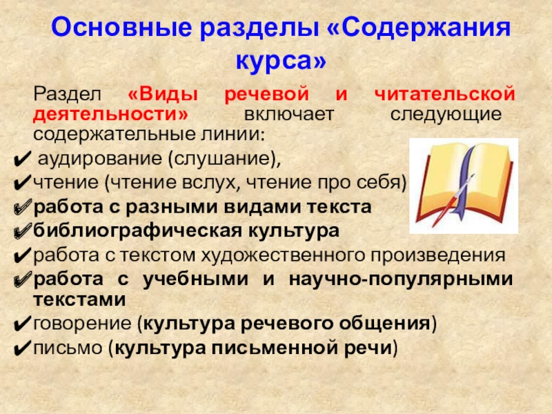 Раздел «Виды речевой и читательской деятельности» включает следующие