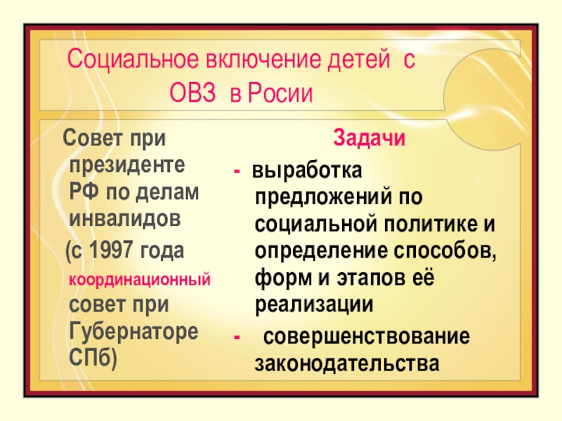 Слайд 6Социальное включение детей с ОВЗ в Росии