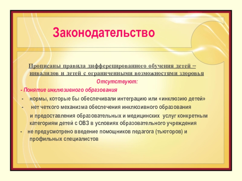 нормы, которые бы обеспечивали интеграцию или «инклюзию детей»