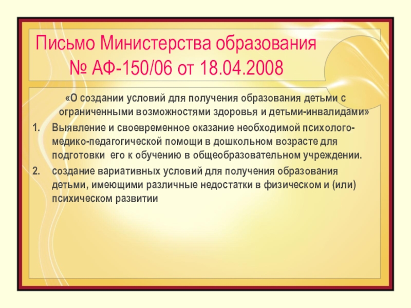 Слайд 12Письмо Министерства образования № АФ-150/06 от 18.04.2008