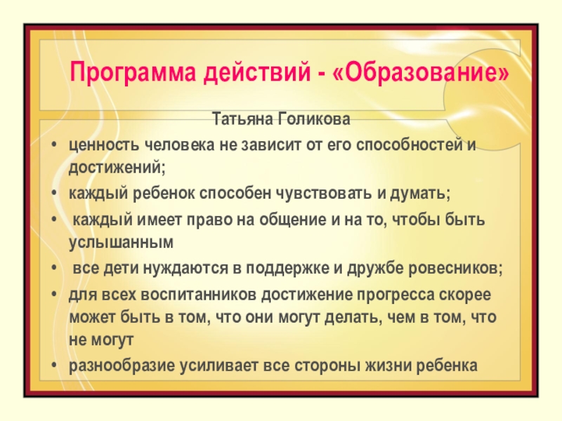 образования подстраивается под каждого ребенка, учитывает все его особенности и создаются условия для его полноценного развития