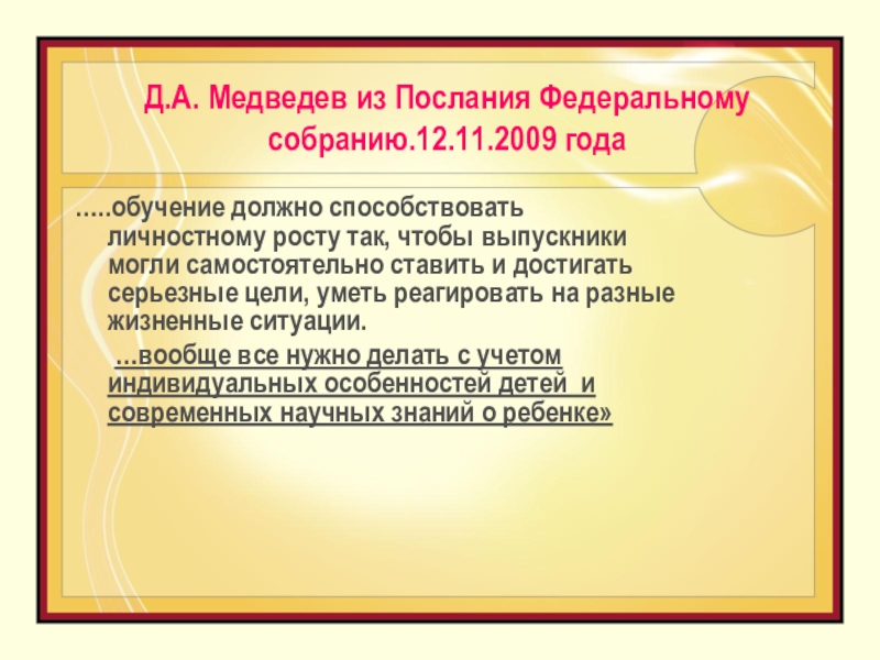 Слайд 7Д.А. Медведев из Послания Федеральному собранию.12.11.2009 года