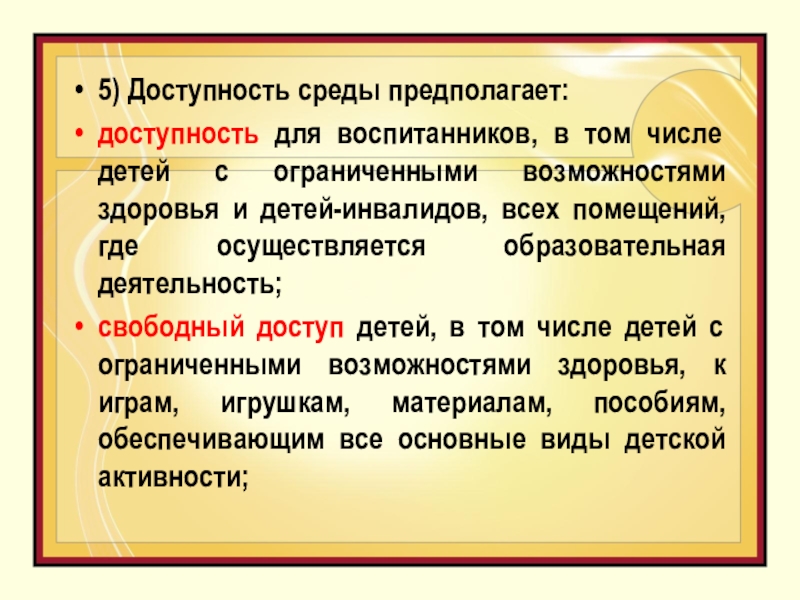 свободный доступ детей, в том числе детей с ограниченными возможностями здоровья, к играм, игрушкам, материалам, пособиям, обеспечивающим все основные виды детской активности;