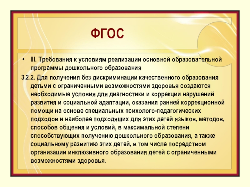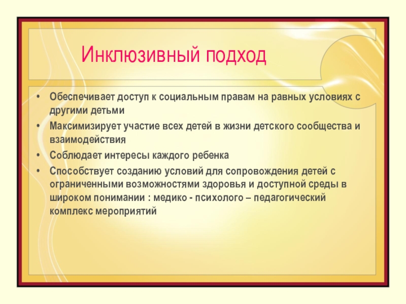 Слайд 1 Приоритеты инклюзивного образования детей с ограниченным возможностями здоровья