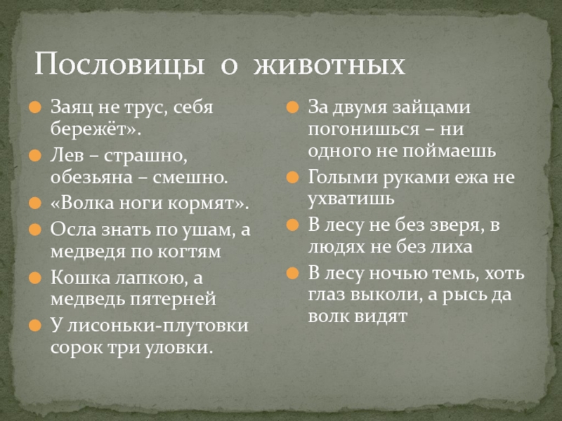 Пословицы про животных