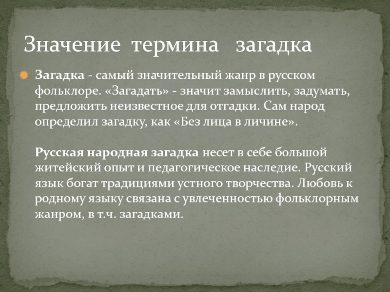 Значение термина загадка
