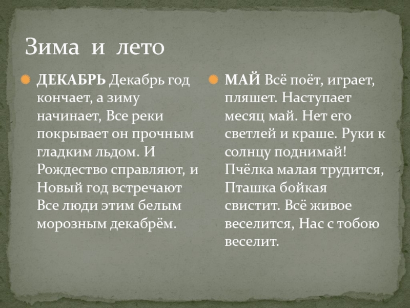 МАЙ Всё поёт, играет, пляшет. Наступает месяц май. Нет его светлей и краше. Руки к солнцу поднимай! Пчёлка малая трудится, Пташка бойкая свистит. Всё живое веселится, Нас с тобою веселит.