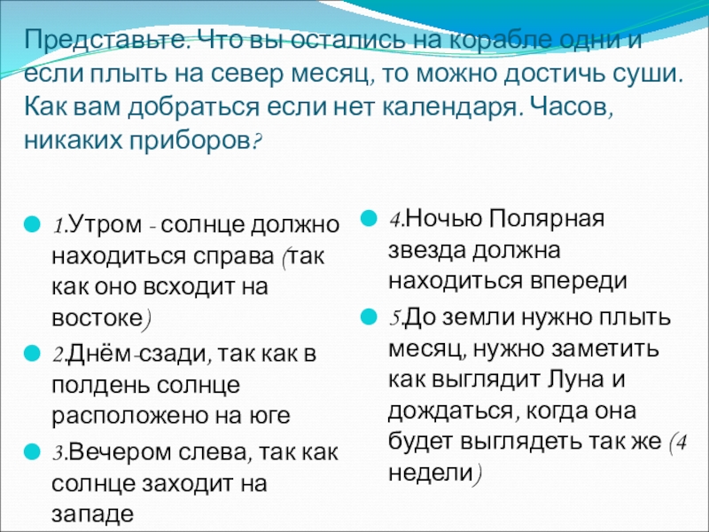 4.Ночью Полярная звезда должна находиться впереди